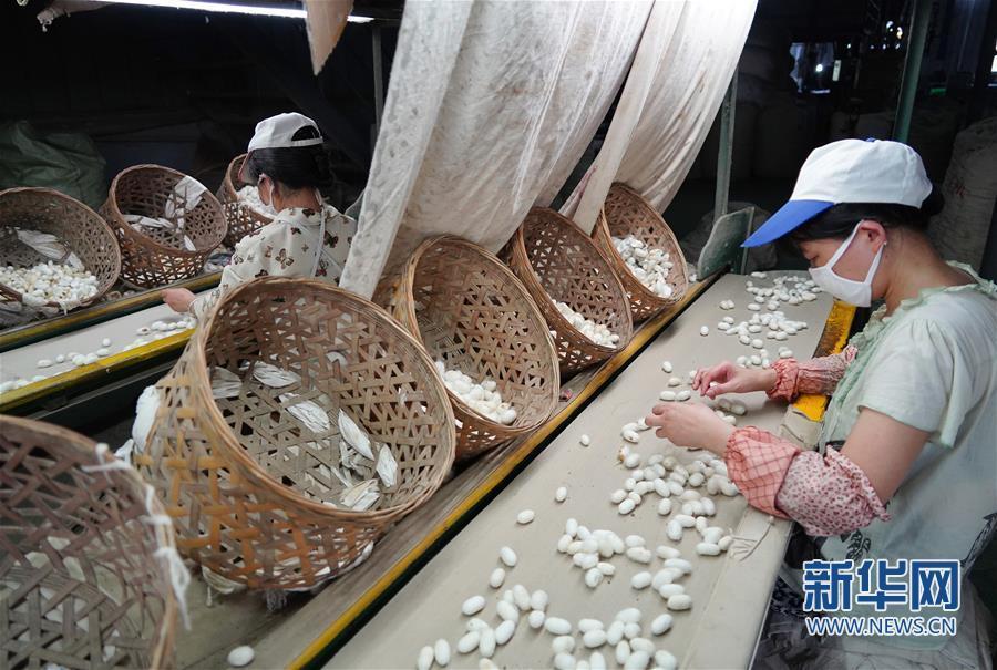 7月19日,工人在石泉縣陜西天成絲業(yè)有限公司生產(chǎn)車間內(nèi)選繭。新華社記者 邵瑞 攝
