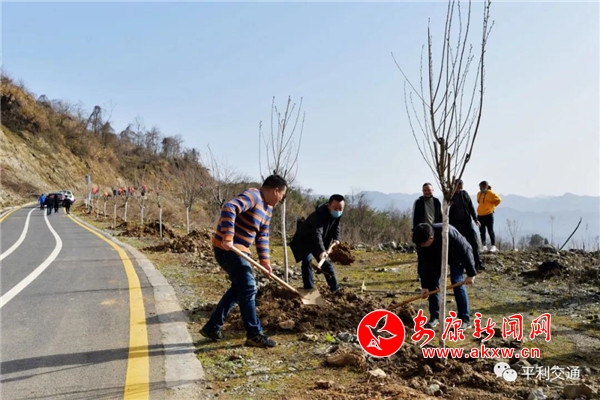 本網(wǎng)訊(通訊員 陳本利)陽春三月、萬物復(fù)蘇。3月11日上午,平利縣城關(guān)鎮(zhèn)紙坊溝村新修的泊油路沿線,全縣各黨政機(jī)關(guān)、企事業(yè)單位干部職工一字?jǐn)[開,有的扶樹、有的鏟土、有的澆水,平利縣2020年春季義務(wù)植樹活動正歡快的氣氛中有序開展。在大家精心栽植下,一株株櫻花精神抖擻的挺立在路旁,將這條通村公路裝扮的煥然一新。同樣義務(wù)植樹綠化美化公路的場景在廣佛鎮(zhèn)塘坊村、西河鎮(zhèn)段家河村、長安鎮(zhèn)公路沿線同時展現(xiàn)。