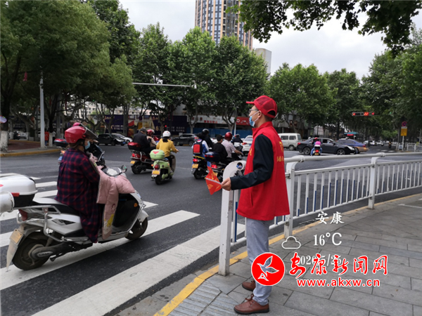 5月25日,市委網(wǎng)信辦支部同果園社區(qū)支部在安火路口聯(lián)合開(kāi)展義務(wù)交通勸導(dǎo)志愿服務(wù)活動(dòng),宣傳交通法規(guī),號(hào)召大家文明出行,文明行車,勸誡違規(guī)行為,做文明城市的踐行者。XRu安康新聞網(wǎng)