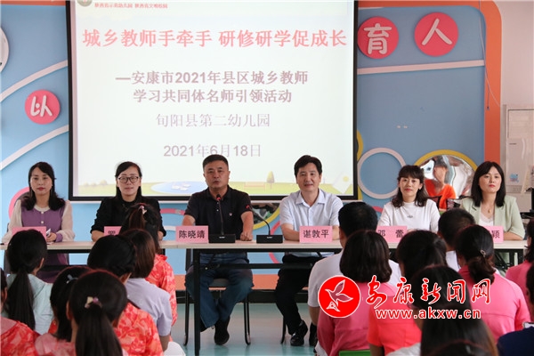 本網(wǎng)訊(通訊員 王國(guó)穎)為慶祝建黨100周年,貫徹黨史學(xué)習(xí)教育“學(xué)黨史悟思想辦實(shí)事開新局”的要求,加強(qiáng)城鄉(xiāng)教師之間的交流與溝通,促進(jìn)城鄉(xiāng)教育均衡發(fā)展。6月17、18日,市幼兒園黨支部在市教體局的指導(dǎo)下,帶領(lǐng)“城鄉(xiāng)教師學(xué)習(xí)共同體名師引領(lǐng)”培訓(xùn)團(tuán)隊(duì),到旬陽(yáng)縣第二幼兒園開展以“城鄉(xiāng)教師手牽手 研修研學(xué)促成長(zhǎng)”為主題的名師引領(lǐng)送教活動(dòng)。市教體局教師工作科科長(zhǎng)、旬陽(yáng)縣師訓(xùn)教研中心領(lǐng)導(dǎo)蒞臨活動(dòng)現(xiàn)場(chǎng)指導(dǎo)培訓(xùn),旬陽(yáng)縣22所鄉(xiāng)村幼兒園165名幼兒教師參加培訓(xùn)。