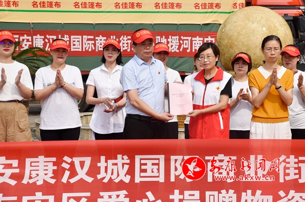本網(wǎng)訊 8月4日9時,一場馳援河南的愛心捐贈儀式在安康漢城國際商業(yè)街舉辦,安康市紅十字會、市工商聯(lián)、市應(yīng)急管理局、陜西安康博泰投資有限公司領(lǐng)導(dǎo)及漢城國際商業(yè)街商戶、員工代表共同見證了物資、資金移交過程。