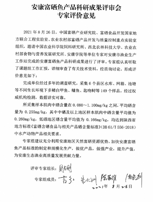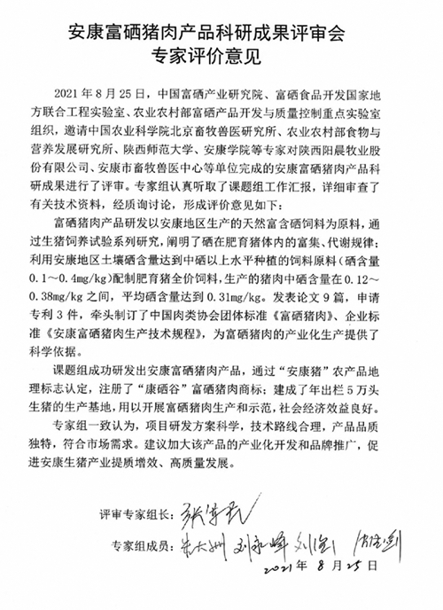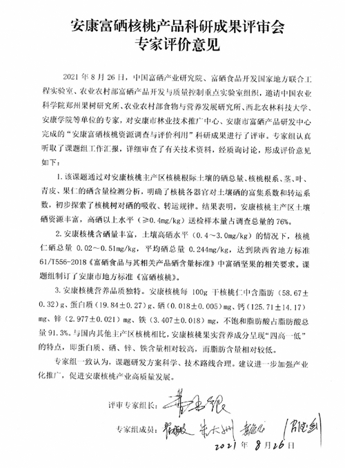 本次評(píng)審中,專家組認(rèn)真聽取了課題組工作匯報(bào),詳細(xì)審查了有關(guān)技術(shù)資料,經(jīng)質(zhì)詢討論后一致認(rèn)為:四大富硒特色產(chǎn)業(yè)課題研發(fā)方案科學(xué)、技術(shù)路線合理,研究成果達(dá)到國內(nèi)先進(jìn)水平,天然富硒是安康得天獨(dú)厚的資源優(yōu)勢(shì),培育開發(fā)出的產(chǎn)品品質(zhì)優(yōu)良,符合市場(chǎng)需求。建議充分利用安康地區(qū)天然富硒資源優(yōu)勢(shì),加快富硒特色產(chǎn)業(yè)標(biāo)準(zhǔn)的制定和規(guī)模化生產(chǎn),做優(yōu)產(chǎn)品、做強(qiáng)產(chǎn)業(yè)、提升產(chǎn)值,加大該產(chǎn)品的產(chǎn)業(yè)化開發(fā)和品牌推廣力度,促進(jìn)產(chǎn)業(yè)提質(zhì)增效。