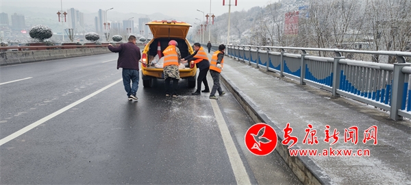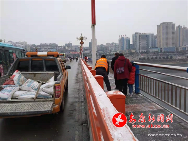 據(jù)了解,7日清晨,安康市市政園林處共投入人力40余人,融雪劑3噸,車輛10臺(tái),對(duì)城區(qū)雷神殿、馬坎天橋、漢江一橋、三橋、南環(huán)干道陳家溝大橋及部分公園集中開(kāi)展除雪融冰工作。