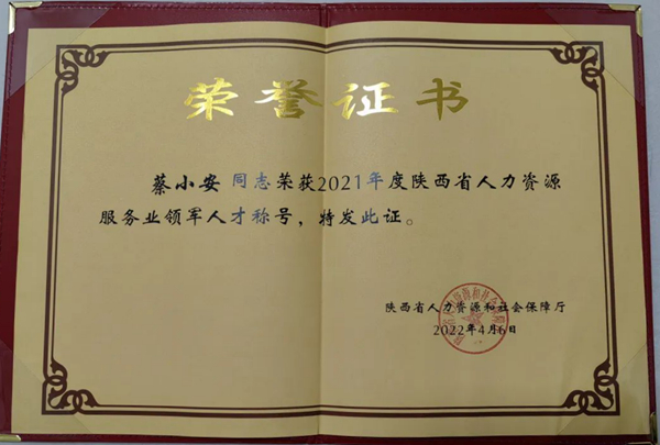 原標題:蔡小安同志榮獲”2021年度全省人力資源服務業(yè)領(lǐng)軍人才”稱號