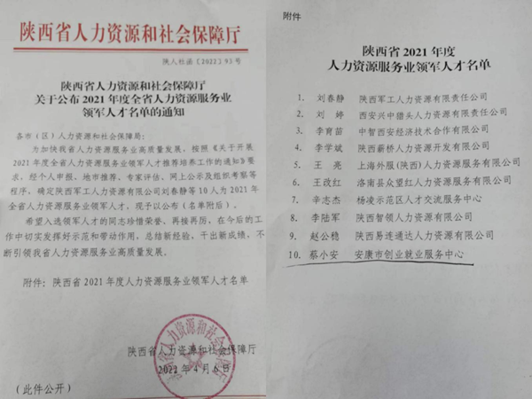 據(jù)悉,為進一步培育發(fā)展我省人力資源服務業(yè),促進我省人力資源服務業(yè)高質(zhì)量發(fā)展,發(fā)揮行業(yè)領(lǐng)軍人才在行業(yè) 發(fā)展中的引領(lǐng)帶動作用,省人力資源和社會保障廳2021年下半年開展了全省人力資源服務業(yè)領(lǐng)軍人才推薦培養(yǎng)工作,通過推薦申報、資格審核、專家評審、公示、考察等環(huán)節(jié),市創(chuàng)業(yè)就業(yè)服務中心副主任、二級調(diào)研員蔡小安從全省30余名推薦人選中脫穎而出,被省人力資源和社會保障廳評為“2021年度全省人力資源服務業(yè)領(lǐng)軍人才”。