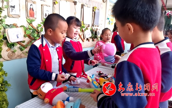 本網(wǎng)訊(通訊員 劉凡 王媛媛)為了幫助幼兒樹立環(huán)保理念,養(yǎng)成勤儉節(jié)約習(xí)慣,同時(shí)增強(qiáng)幼兒社會(huì)交往能力,提高幼兒語(yǔ)言表達(dá)能力,以及關(guān)愛(ài)他人的情感。4月28日,安康市幼兒園大班組結(jié)合主題教學(xué)活動(dòng)舉辦了“小跳蚤 大愛(ài)心”跳蚤市場(chǎng)活動(dòng)。