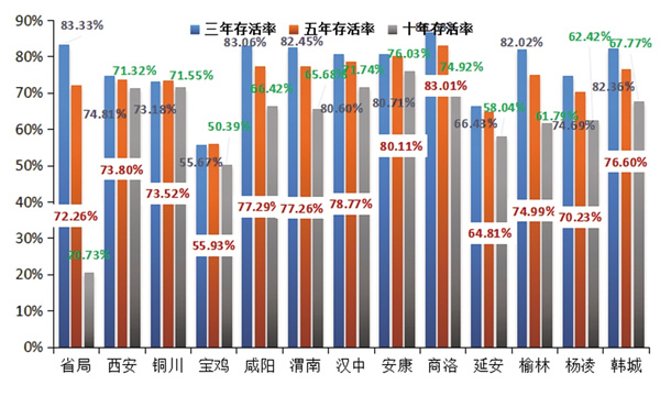 2011—2020年期間我省各市(區(qū))市場主體存活率情況
