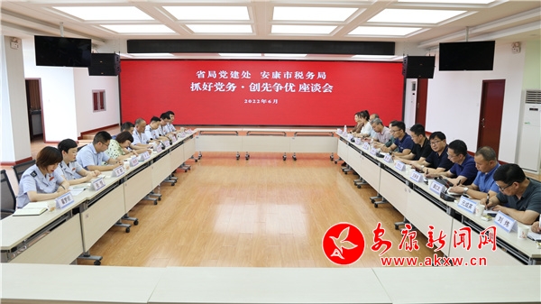 在國(guó)家稅務(wù)總局安康市漢濱區(qū)稅務(wù)局,調(diào)研組現(xiàn)場(chǎng)聽取“四鐵”政治機(jī)關(guān)建設(shè)、“雙建雙優(yōu)”建設(shè)情況講解,實(shí)地觀摩身邊先進(jìn)模范展示大廳,勞模工作室、雙優(yōu)培育室,黨史教育長(zhǎng)廊、法治教育長(zhǎng)廊、稅史教育長(zhǎng)廊、廉潔教育長(zhǎng)廊、責(zé)任擔(dān)當(dāng)長(zhǎng)廊“一廳兩室五廊”教育陣地和“一支部一品牌”黨員活動(dòng)陣地,閱覽了黨建基礎(chǔ)資料,深入了解漢濱區(qū)稅務(wù)局黨建工作規(guī)范化建設(shè)新思路、新做法。座談會(huì)上,與會(huì)人員逐一發(fā)言,圍繞“抓好黨務(wù)·創(chuàng)先爭(zhēng)優(yōu)”主題,從各單位黨建工作主要做法、工作經(jīng)驗(yàn)、特色亮點(diǎn)等方面進(jìn)行了深入交流,對(duì)基層黨建工作中存在的突出問題溝通探討,就進(jìn)一步做好陜西稅務(wù)黨建工作建言獻(xiàn)策,座談會(huì)現(xiàn)場(chǎng)氣氛熱烈。