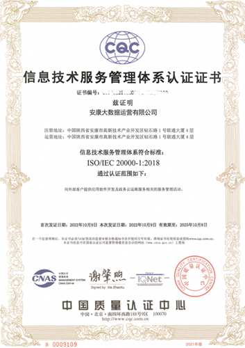 近日,經(jīng)過了全面、專業(yè)、細致的審核,安康大數(shù)據(jù)公司成功獲得信息技術服務管理體系(ISO/IEC20000-1:2018)與信息安全管理體系(ISO/IEC27001:2013)認證證書。