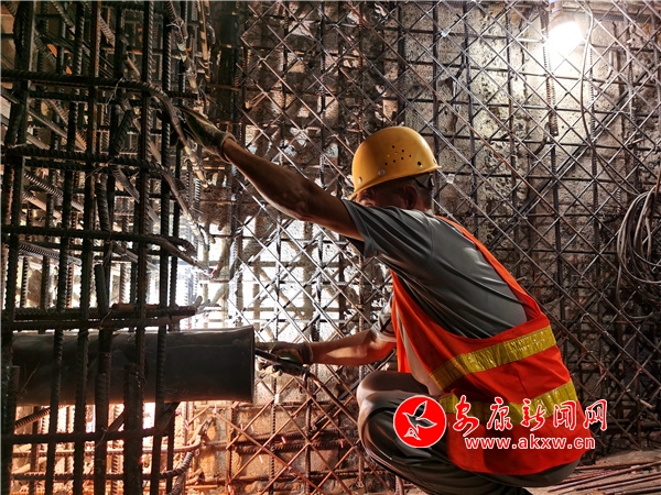在石泉漢江大橋危橋改造工程現(xiàn)場,幾名施工人員正頭戴安全帽或?qū)W⒌亟壴摻睿蛎β档睾附愉摻,藍(lán)色的電弧閃閃發(fā)光,格外刺眼。
