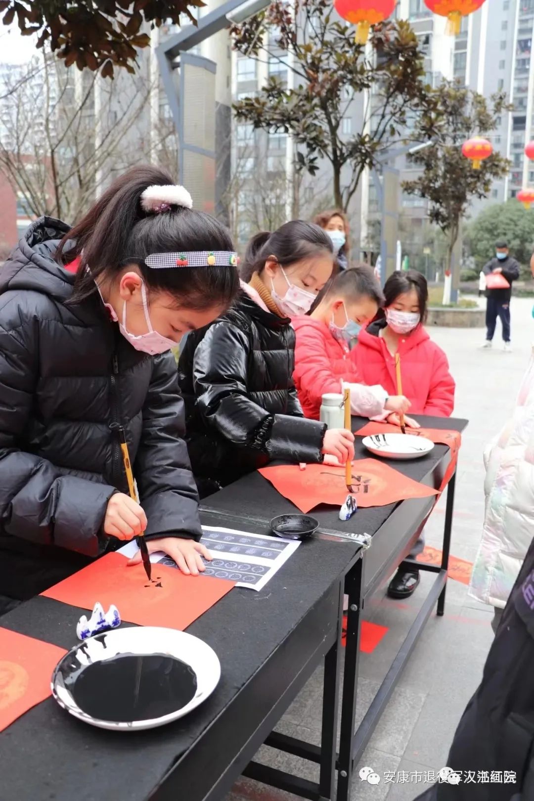 活動現(xiàn)場,翰墨飄香,其樂融融。書法老師鋪開紅卷,蘸好筆墨,筆鋒婉轉(zhuǎn)、妙語成雙;顒又,在安康市退役軍人書畫院的書畫家和培訓(xùn)機(jī)構(gòu)的老師們指導(dǎo)下,孩子們也提筆揮墨,興趣盎然。一幅幅春聯(lián)帶來了年的氣息,不同風(fēng)格的一個個福字,給人們送去了滿滿的祝福,大家潑墨揮毫,帶著辭舊迎新的美好祝愿,為即將來臨的春節(jié)增添了濃濃的喜慶氛圍。