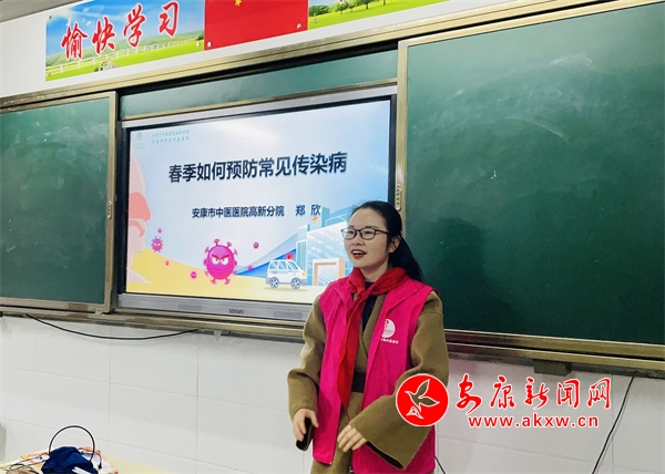 捐贈(zèng)儀式后,安康市中醫(yī)醫(yī)院志愿者在教室內(nèi)開展了知識(shí)講座,為學(xué)生們講解了春季如何預(yù)防常見(jiàn)傳染病、七步洗手法等知識(shí),孩子們聽(tīng)得津津有味,并和志愿者積極互動(dòng)。