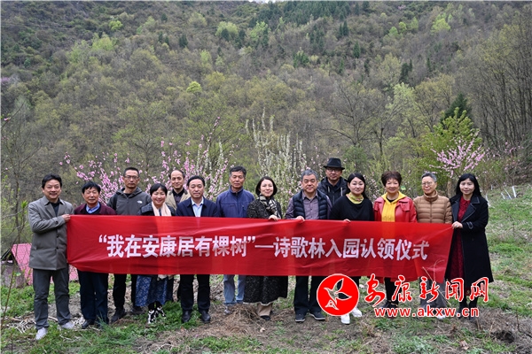 隨后,詩人、作家們還走進(jìn)果園,舉行了“我在安康居有棵樹”——詩歌林入園認(rèn)領(lǐng)儀式,并在這個春天一起種下代表著本次活動的紀(jì)念樹。