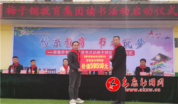 當(dāng)天中午的啟動儀式上,梅子鋪區(qū)域的梅子鋪九年制學(xué)校和袁莊、余嶺、逸夫三所村級小學(xué)一道實(shí)施“全校同讀一本書”活動。校方介紹:本學(xué)期將以每輪淘汰百分之五十的讀書作文競賽方式,開啟三輪閱讀比賽,所用圖書均由安康市慈善協(xié)會南山分會認(rèn)捐。