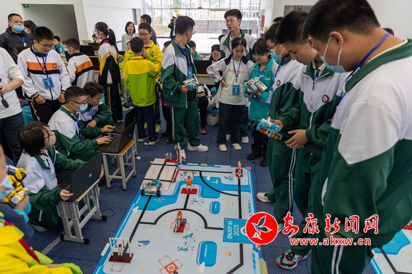 比賽現(xiàn)場,參賽選手們信心滿滿,全神貫注地編寫程序、調(diào)試機(jī)器人,根據(jù)競賽項(xiàng)目的任務(wù)要求相互協(xié)作配合,執(zhí)行相關(guān)任務(wù),實(shí)現(xiàn)了多種創(chuàng)意,上演了一場精彩絕倫的“機(jī)器人大戰(zhàn)”。賽場上,選手們個(gè)個(gè)胸有成竹、思維敏捷、身手不凡,充分展示了同學(xué)們的科技創(chuàng)新和動手實(shí)踐能力,為全市中小學(xué)人工智能及教育信息化工作寫下濃墨重彩的一筆。