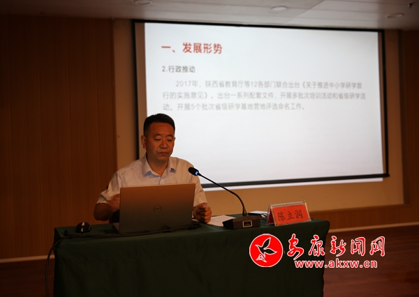 安康市教育學會會長、安康市大中小學研學旅行實踐教育基地共同體理事長陳立潤作《安康市大中小學研學實踐教育活動的探索與思考》專題報告,報告圍繞發(fā)展形勢、亟待解決的問題、課程體系建設、共同體的工作方向四個方面深入淺出地剖析了安康研學旅行教育活動發(fā)展的現(xiàn)狀及未來發(fā)展方向。