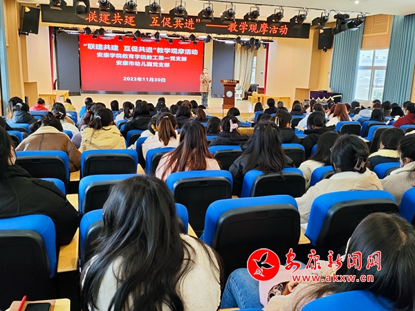 在開展教學(xué)觀摩研討交流活動中,安康市幼兒園6名教師為安康學(xué)院學(xué)前教育系350余名學(xué)生,進(jìn)行了五大領(lǐng)域集體教學(xué)觀摩課展示。兩個黨支部20余名黨員教師,一起探討黨建品牌建設(shè)方面的工作思路,了解市幼兒園在學(xué)前教育理論指導(dǎo)方面的需求,并建立了黨支部共建教研交流群。