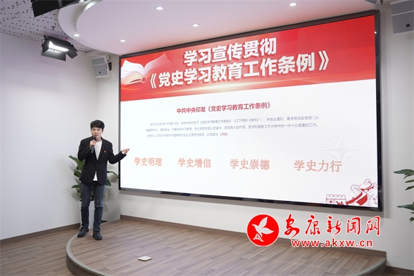 活動(dòng)中,市委黨校青年教師分享《中國(guó)共產(chǎn)黨陜西安康歷史》第一卷(1921-1950),講述新民主主義革命時(shí)期的安康黨史,通過(guò)情景演繹再現(xiàn)安康紅色革命歷史中的英雄人物,從紅色文化遺存、革命先輩感人事跡中闡釋中國(guó)共產(chǎn)黨初心使命,引人深思、催人奮進(jìn)。