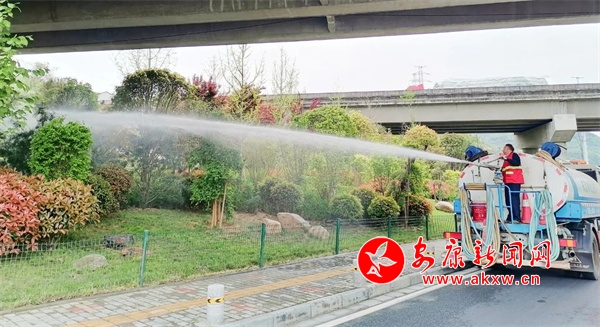 春季,苗木積蓄了一冬的生機,需要澆水來促進綠植更好地生長,通過自動噴灌、人工澆灌等方式,全面澆灌安康中心城區(qū)內(nèi)的苗木,為綠化苗木的健康生長補水,讓苗木第一時間“喝飽水”。按照“細澆慢澆、”“澆足灌透”的原則,每天投入水車7輛,日澆水量約200余噸,堅持應澆盡澆,為植物提供生長所必需的水分,確保苗木、花卉健康生長,綠化成果不受損失。
