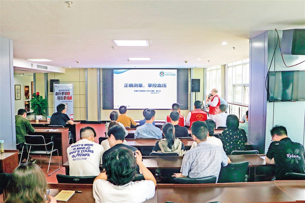 本網(wǎng)訊(記者 翟本榮/文 吳單/圖)5月17日是第20個(gè)世界高血壓日,當(dāng)天上午,安康日報(bào)社邀請市中醫(yī)醫(yī)院高新分院相關(guān)專家,來單位開展“有效控制 健康長壽”高血壓及康復(fù)醫(yī)療健康科普知識專題講座。報(bào)網(wǎng)全體干部職工70余人參加。
