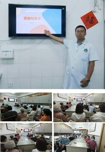 護士長馬運俠以播放癌痛科普視頻的方式,通過臨床疼痛案例深入淺出地將癌痛防治知識分享給大家,現(xiàn)場與患者進行了“話療”,消除他們的緊張情緒,幫助他們樹立抗擊癌痛的信心,科學的防癌抗癌,受到患者及家屬的一致好評。