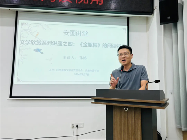 由陜西省散文學會安康分會攜手安康市圖書館主辦的“文學欣賞系列”講座,于9月7日舉辦第四場。平時定員50人的市圖書館多功能廳,當日擠了83人。來自全市各地的作家、文學愛好者共同聆聽了安康學院教授孫鴻主講的《〈金瓶梅〉的閱讀視角》。