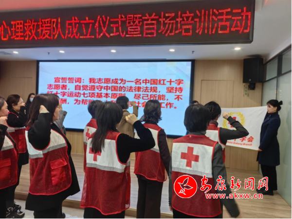 為助力健康安康建設,進一步加強安康市紅十字心理救援能力建設,提升廣大群眾心理健康水平,2024年12月31日上午,安康市紅十字會聯(lián)合市人民醫(yī)院舉辦安康市紅十字心理救援隊成立儀式暨首場培訓活動。圖為紅十字心理救援隊隊員現(xiàn)場宣誓和開展首場培訓。(鄭時根 攝) Cuy安康新聞網(wǎng)