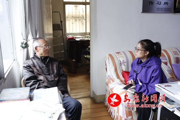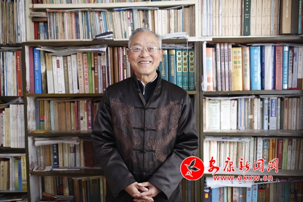 他的家在一樓,春日陽(yáng)光把屋里曬的暖暖,兩面墻的萬(wàn)卷藏書(shū)讓人一進(jìn)門就覺(jué)得徜徉于典籍的海洋。郭老緩緩坐在靠窗的凳子上,用一只手用力按住強(qiáng)烈抖動(dòng)的另一只手,娓娓道來(lái)。