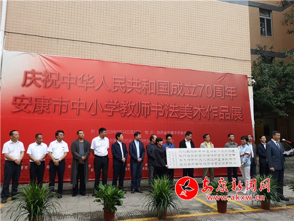 本網訊(實習記者 雷文鈺)為慶祝中華人民共和國成立70周年,安康市中小學教師,用一份特殊的禮物向偉大的祖國獻禮,9月24日上午,由安康市教育體育局主辦,安康市教研室、陜西省安康中學、安康市教育學會、安康市中小學美術教育研究會承辦,安康市書法家協會、安康市群藝館、陜西省于右任書法學會安康分會、陜南畫院協辦的“輝煌七十載,筑夢新時代”慶祝新中國成立七十周年安康市中小學教師書法美術作品展在安康中學美術館啟幕。