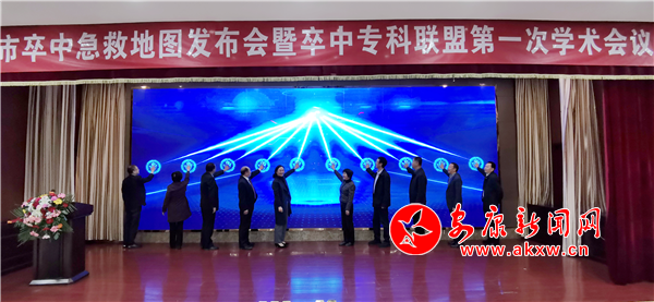 發(fā)布儀式上,與會(huì)領(lǐng)導(dǎo)為我市卒中?坡(lián)盟首批成員26家單位授牌,并共同啟動(dòng)安康市卒中急救地圖。