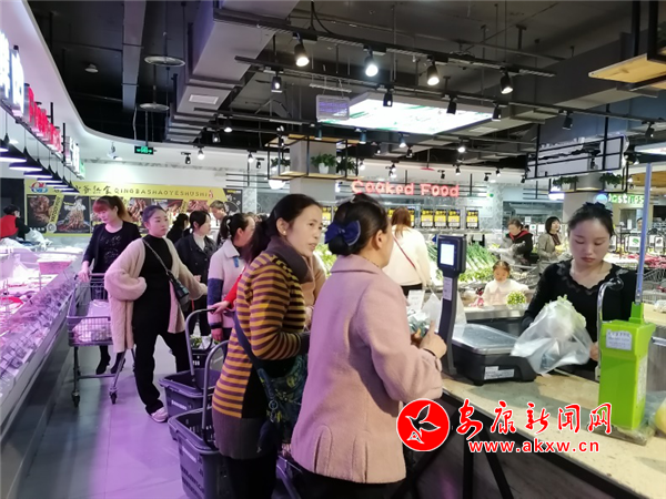 記者在城區(qū)內(nèi)各超市看到,實(shí)體店的購(gòu)物狂歡,也很接地氣。促銷員叫賣各種特惠商品,大量民眾在挑選價(jià)格優(yōu)惠的生鮮、飲品、果蔬,超市收銀臺(tái)前也排起長(zhǎng)隊(duì)。