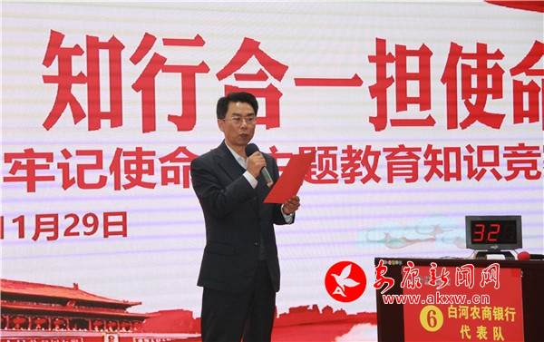 據(jù)了解,本次活動(dòng)以“學(xué)思踐悟守初心,知行合一擔(dān)使命”為主題,以習(xí)近平新時(shí)代中國(guó)特色社會(huì)主義思想、黨的十九屆四中全會(huì)精神、黨章黨規(guī)、掃黑除惡專(zhuān)項(xiàng)斗爭(zhēng)應(yīng)知應(yīng)會(huì)知識(shí)等為競(jìng)賽內(nèi)容,設(shè)置必答、搶答、風(fēng)險(xiǎn)、加試等環(huán)節(jié)進(jìn)行,來(lái)自安康各縣區(qū)農(nóng)商行10個(gè)代表隊(duì),共30名選手參與競(jìng)答。賽場(chǎng)上,氛圍緊張激烈,你追我趕,尤其在搶答題環(huán)節(jié),搶答令一經(jīng)發(fā)出,各隊(duì)選手立即開(kāi)始爭(zhēng)相搶拍競(jìng)答器,比分稍微落后的隊(duì)伍在搶到答題權(quán)后,出色作答后贏得現(xiàn)場(chǎng)陣陣掌聲,即使答錯(cuò),選手們也毫不氣餒,互相鼓勵(lì),立即調(diào)整狀態(tài)準(zhǔn)備下一次搶答。比賽現(xiàn)場(chǎng)精彩紛呈,觀眾不時(shí)為選手們精準(zhǔn)的回答報(bào)以熱烈的掌聲。