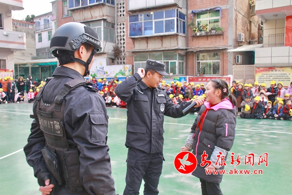 本網(wǎng)訊(記者 張喬 實(shí)習(xí)記者 雷文鈺)為進(jìn)一步宣傳普及校園安全知識(shí),提升小學(xué)生安全防范意識(shí)和反恐能力。12月20日,漢濱區(qū)紅旗小學(xué)邀請(qǐng)安康市公安局漢濱分局特警大隊(duì)的隊(duì)員們來(lái)到學(xué)校,給全校1000多名師生上了一堂別開生面的安全防范教育課。為孩子宣講安全常識(shí),提高大家的安全意識(shí)。