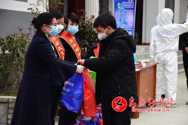 活動現(xiàn)場,白河縣人社部門、中國郵政集團(tuán)白河縣分公司為赴蘇務(wù)工人員贈送了愛心禮包,預(yù)祝他們平安返崗。