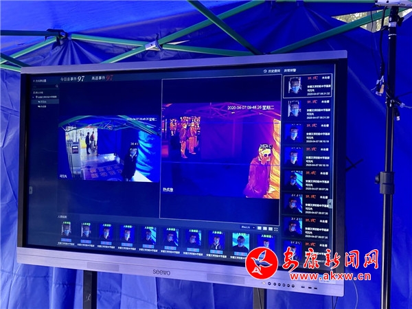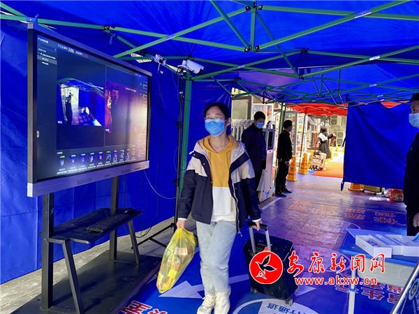 在漢濱初中高新校區(qū)校門口,記者看到學生們戴著口罩保持著安全距離在排隊進入校內,旁邊還有很多幫孩子拿行李的家長在向他們交代相關注意事項。排在前列的學生有序將自己的健康信息表交給負責檢查的工作人員核對,通過之后會進入一個設有熱成像紅外線人體測溫儀的檢測點,每個從里面經過的學生體溫都會出現(xiàn)在測溫儀的大顯示屏上,工作人員緊盯著屏幕排查異常人員。