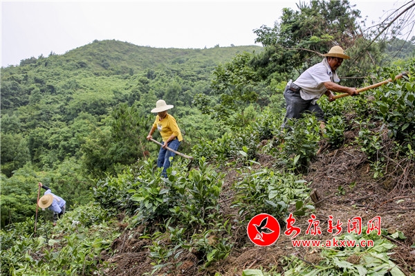 在橋河林場,一株株茶樹深深地扎根在60度的山坡上,這是上世紀(jì)70年代種植的老茶園,漢濱區(qū)德潤天然富硒農(nóng)產(chǎn)品開發(fā)有限公司的王彪正帶領(lǐng)茶農(nóng)們在修整,將建成標(biāo)準(zhǔn)化的示范茶園。不同于和農(nóng)戶逐個(gè)簽訂土地流轉(zhuǎn)合同,德潤公司直接與橋河村簽訂協(xié)議,把撂荒的3000畝林場土地全都承包下來。