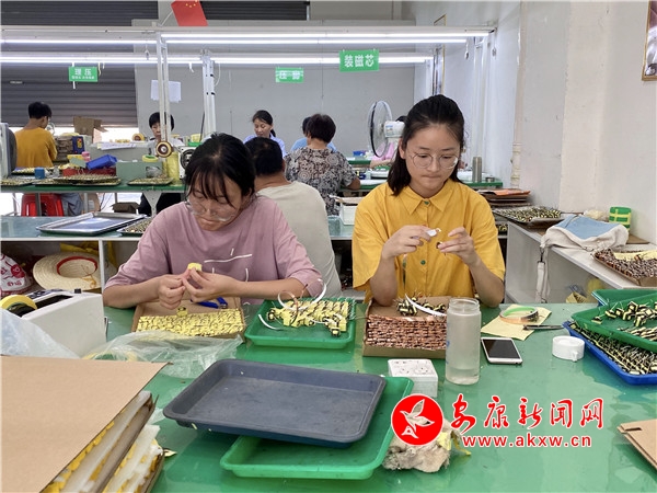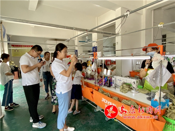 采訪團(tuán)一行來(lái)到平利縣老縣鎮(zhèn)錦屏社區(qū),社區(qū)四個(gè)工廠內(nèi)100多名工人正在生產(chǎn)勞作。