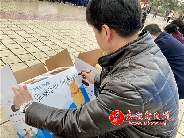啟動(dòng)儀式上,安康義工聯(lián)合會(huì)負(fù)責(zé)人介紹了2020年壹基金溫暖包項(xiàng)目安康發(fā)放情況;相關(guān)負(fù)責(zé)人為愛(ài)心企業(yè)及愛(ài)心個(gè)人頒發(fā)了愛(ài)心認(rèn)證牌匾;進(jìn)行捐贈(zèng)交接,陜西省體育彩票管理中心安康市管理站捐贈(zèng)價(jià)值3650元的10個(gè)溫暖包,陜西悅嘉冠宏項(xiàng)目管理有限公司捐贈(zèng)價(jià)值3650元的10個(gè)溫暖包,中國(guó)生物多樣性保護(hù)與綠色發(fā)展基金會(huì)安康站捐贈(zèng)價(jià)值10950元的30個(gè)溫暖包,漢濱區(qū)文昌城南幼兒園捐贈(zèng)價(jià)值2190元的6個(gè)溫暖包;相關(guān)領(lǐng)導(dǎo)嘉賓作了交流講話;領(lǐng)導(dǎo)嘉賓在溫暖包外包裝箱上寫(xiě)下對(duì)貧困兒童的寄語(yǔ),又為貧困兒童代表戴上了棉帽、穿上了厚實(shí)棉衣。