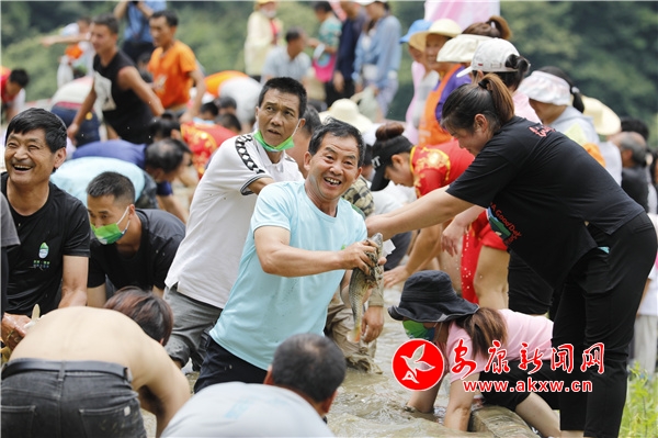 活動中的摸魚游戲更是妙趣橫生,群眾高高卷起褲管、手袖,有的甚至赤膊上陣,在渾水里搜索“目標(biāo)”。參賽者們互相展示自己“渾水摸魚”的成果。