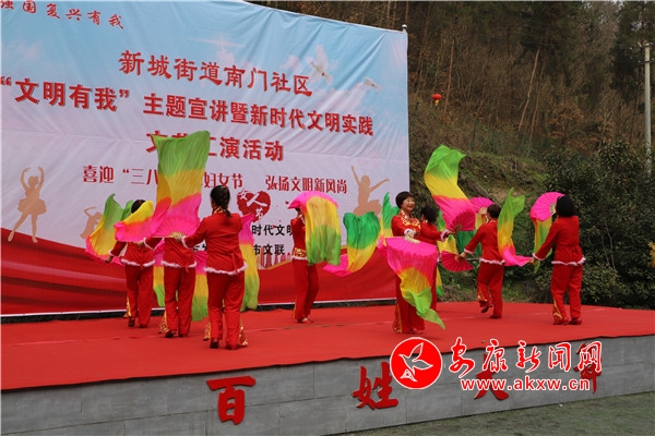 本網(wǎng)訊(記者 趙漪湉)為傳播文明理念,弘揚時代新風(fēng),鞏固和提升創(chuàng)建全國文明城市工作成果,3月6日,市發(fā)改委、市文聯(lián)、漢濱區(qū)發(fā)改局、新城街道南門社區(qū)新時代文明實踐站聯(lián)合在南門社區(qū)成功舉辦“文明有我”主題宣講暨新時代文明實踐站文藝匯演。