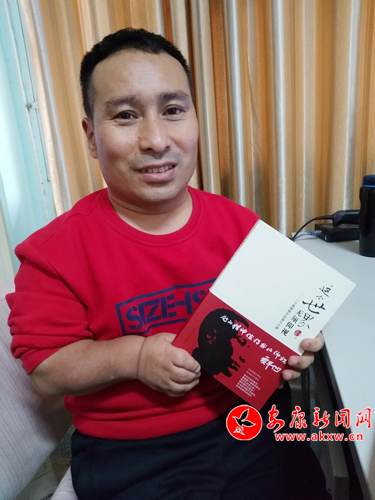 雖然被禁錮在矮小的身軀中,但殘疾作家王庭德從未放棄對(duì)詩和遠(yuǎn)方的追求。從起步的短篇《跋涉的生命》,到歷時(shí)兩年完成19.7萬字的長篇自傳體紀(jì)實(shí)文學(xué)《這個(gè)世界無須仰視》和詩集《心靈的燈盞》,腦海中的數(shù)萬文字傾瀉,書寫出王庭德自強(qiáng)不息的奮斗人生。