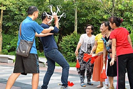 小伙創(chuàng)意無人機送月餅劵給女友 遭大媽哄搶