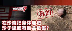 很多人喜歡在沙灘上玩沙子埋人的游戲,而網(wǎng)上卻有傳言說,這種“沙灘埋人”的玩法其實很危險,因為沙子一旦進了水,就會把埋在沙子里的人吸住,無法自拔。真有這么危險嗎?為此,央視《是真的嗎》欄目記者來到秦皇島北戴河的沙灘來探尋真相。