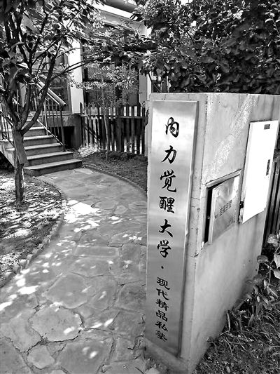 在一樓通往二樓的樓梯拐角處,能清楚地看到內(nèi)力覺醒大學(xué)精品私塾辦學(xué)模式的牌子“軍事化管理、一束花教育、自主式學(xué)習(xí)、艱苦化生活、淘汰式選擇、歷史化熏陶、百家式講課、行走化風(fēng)格、個(gè)性化發(fā)展、合并式內(nèi)容”。文/本報(bào)記者 林艷 武文娟