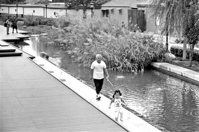 浮雕旁邊還搭建了一些木質(zhì)平臺(tái),居民可以休憩散步。姚文國告訴北青報(bào)記者,這條景觀河道,不僅還原了古河道走向,還成為周邊居民的休閑場所,實(shí)現(xiàn)生態(tài)環(huán)境提升。“下一步將對(duì)澄清下閘遺址的局部清理修復(fù),國家文物局已經(jīng)批復(fù)了修復(fù)方案,未來將原址原風(fēng)貌地展示!