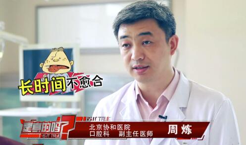 周煉說:“我們經(jīng)常會發(fā)現(xiàn)病人有反復(fù)的創(chuàng)傷史,比如反復(fù)的咬傷,或是癌變的局部臨近有一些不良的修復(fù)體、殘根殘冠、尖銳的硬組織造成反復(fù)的創(chuàng)傷,會導(dǎo)致創(chuàng)傷性的病變發(fā)生癌變!