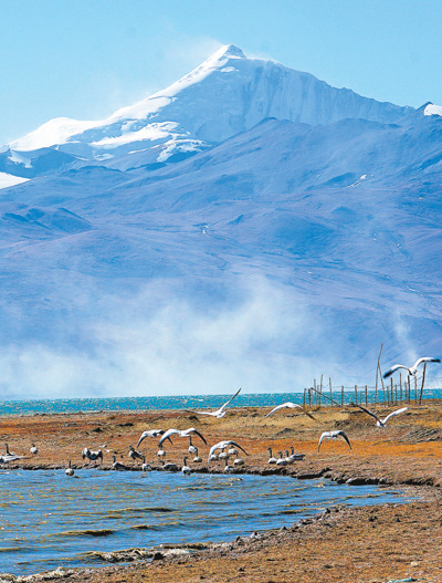| 羊卓雍錯湖畔棲息的候鳥。 |