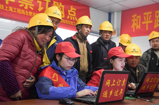 1月3日,志愿者在幫助來自湖北襄陽的黃玉蓮(左一)等網(wǎng)購返鄉(xiāng)火車票。當日,春運火車票正式開始發(fā)售。為幫助農(nóng)民工順利返鄉(xiāng),安徽合肥市和平路街道當涂路社區(qū)組織志愿者到轄區(qū)工地,為外來務(wù)工人員網(wǎng)購返鄉(xiāng)火車票,并現(xiàn)場講解如何利用手機App購票。新華社記者 張端/攝Njn安康新聞網(wǎng)