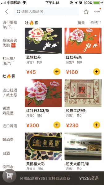 無獨有偶。家住北京市朝陽區(qū)的馮女士也向北青報記者反映,她在外賣平臺上的一些超市中看到,有些超市將香煙的名字改成“雙爆”、“紅”、“京”等,雖然商品圖片模糊不清,但熟悉的人一眼就能看出是煙的包裝。