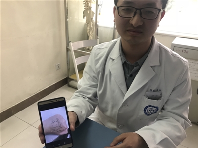 酷似電吹風(fēng)的外形,簡(jiǎn)單的簡(jiǎn)筆畫,楊磊在1分鐘時(shí)間就簡(jiǎn)單描了一個(gè)小豬佩奇!皝(lái)看病的小朋友很多是要哭要鬧的,但是看到小豬佩奇,就覺(jué)得很好玩,沒(méi)那么情緒激動(dòng)了!睏罾谡f(shuō)。直到當(dāng)天上午11點(diǎn)半,楊磊陸陸續(xù)續(xù)又看了15個(gè)左右的病人,“對(duì)于年齡小的病人有作用,對(duì)于年齡偏大的病人小朋友,就沒(méi)啥效果了!